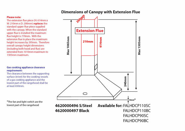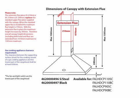 Falcon stainless steel extension flue to suit FALHDCP canopy rangehoods.