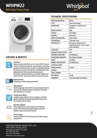 Whirlpool Floor Stock WIO3033PELAUS 60cm 15 Place Power Clean Integrated Dishwasher