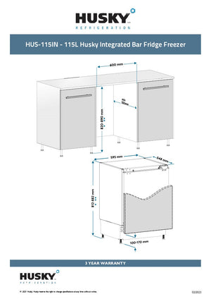 Introducing the 115L Husky Integrated Bar Fridge Freezer, an excellent addition to your home kitchen! This integrated bar fridge freezer is perfect for those tight spaces, featuring a convenient, compact design with a reversible door that allows placement in any area. You'll be delighted with the adjustable thermostat that allows you to keep your food and drinks at the ideal temperature and the larger storage drawers for easy organization. Plus, this quality appliance is designed with top-notch features such as tempered glass shelves and a unique manual defrost system. Crafted with care, you can feel confident relying on this model for your household needs. Lastly, the 115L Husky Integrated Bar Fridge Freezer is backed by a 3 Year Warranty, ensuring your satisfaction.