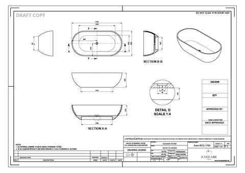 Kaskade RS12-1700 Aveo 1700mm Stone Bath