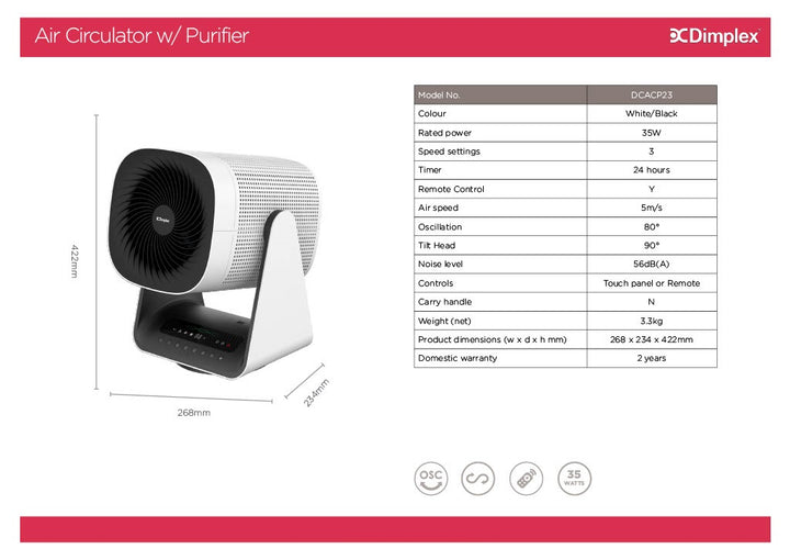 Our Air Circulators work for any season and offer many more benefits than a traditional fan, keeping your family comfortable all year round. Our Air Circulators can be used to circulate cool air from air conditioners, hot air from heaters, or to help keep rooms fresh by circulating stale air with fresh air. With an added air purification, keep fresh all year round with this Air Circulator.- 3 speed settings