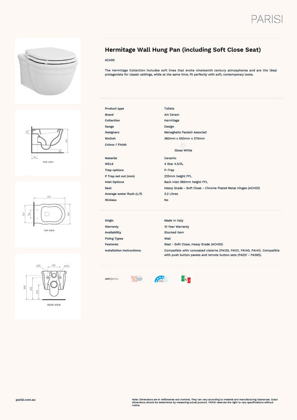 - Features: Seat - Soft Close, Heavy Grade (ACH03)