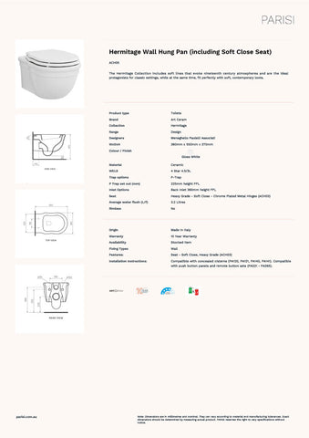 - Seat: Heavy Grade - Soft Close - Chrome Plated Metal Hinges (ACH03)