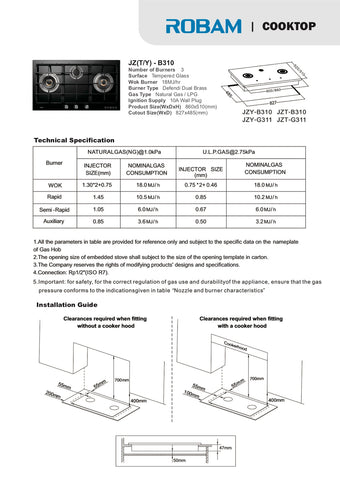 Robam JZ(T/Y)-B320 900mm Glass 3 Burner