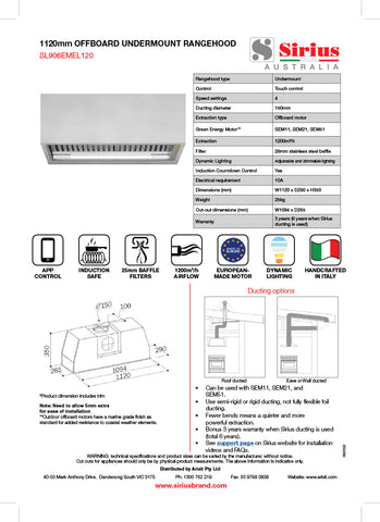Sirius SL906EMEL120 Offboard 1120mm Undermount Rangehood