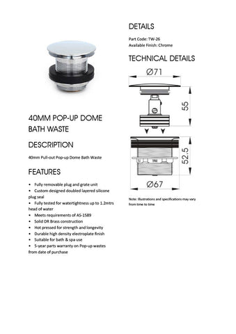 Bespoke Bathware Dome Pop-Up Waste for Bathtub