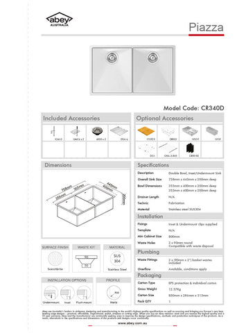 With its commercial style and deep bowled design, the Piazza range can either be undermount or inset, offering a geometric look that can not be replicated by any hi-tech automation. These sinks are hand crafted and fabricated from commercial quality. 1mm 18/10 stainless steel and have a 10mm internal radius edging for easy cleaning.