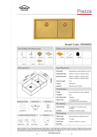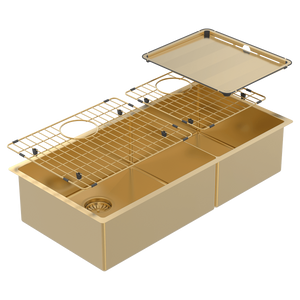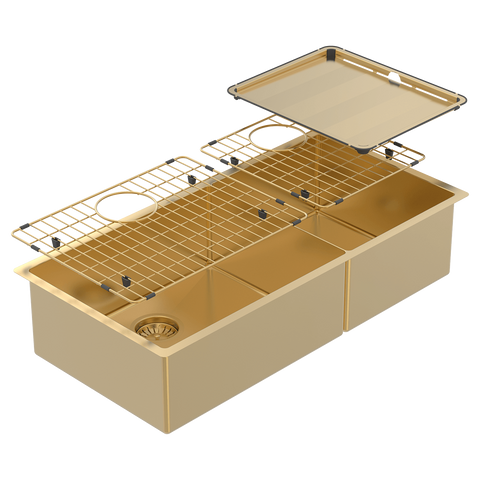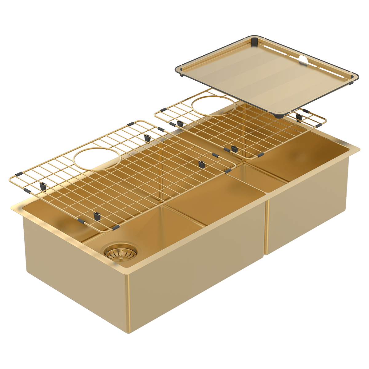 Our Piazza Finished sinks are achieved through a process called ‘Physical Vapor Deposition (PVD)”. The process ensures a coating that is both scratch resistant and impact-resistant. Each sink comes with a matching drain tray and protective grid in your chosen finish.