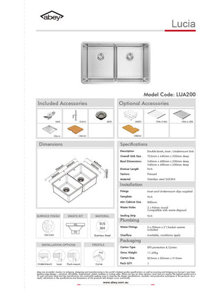 ABEY LUA200 LUCIA Stainless Steel Sink