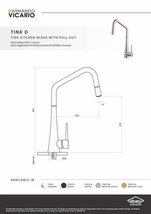 Our TINK-D Mixer features a modern sculptured base, pull-out, elegant side lever & swivel spout.