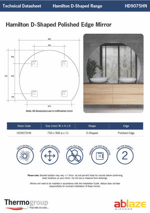 - HD9075HN -Â W900xH750xD11mm - SPECIFICATIONS SHEET