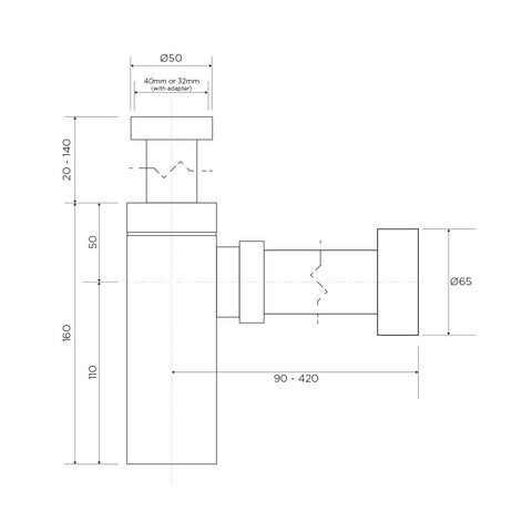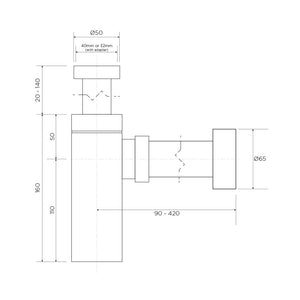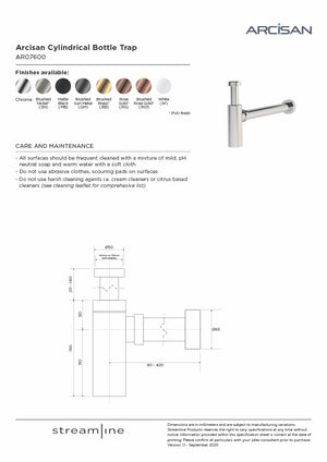 The Arcisan Cylindrical Bottle Trap is constructed from the highest grade Chrome plated brass. It features Arcisan’s unique fast fix, machined brass wall connection, with double O-Ring sealing system for a secure leak free fitting. It also comes with a 32mm adapter if required. The horizontal pipe is a generous length of 450mm, to ensure it fits even the largest basins.