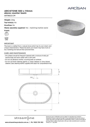 The new range of basins from Arcisan have been carefully crafted from solid stone, each basin having its own unique characteristics and charm; so no-two basins will look the same.These luxurious basins have been sealed, meaning the honed surface has been treated with a water-repellent sealant to help repel liquids and grime.