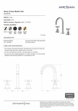 The Axus Cross series is a classic, cross handle design tapware range. It has a slim, round, balanced profile that will compliment any modern bathroom.