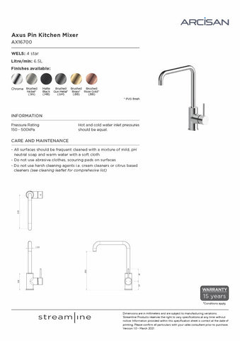 Axus Pin is a complete comprehensive series, featuring hob mounted and wall mounted mixers, complimenting bath fillers, kitchen mixers and accessories.