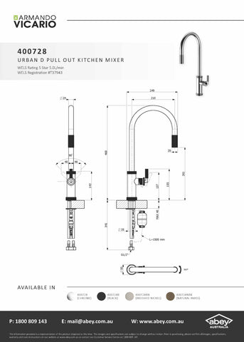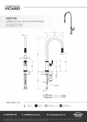 Armando Vicario 400728 Urban D Pull Out Kitchen Mixer