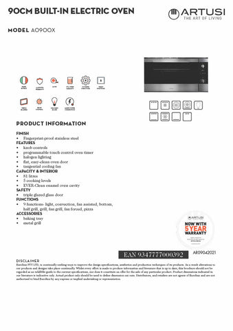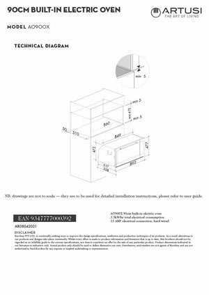 - Type: 90cm Built-In Electric Oven