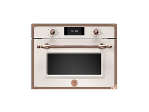 This Bertazzoni Heritage Series 60x45 cm combi steam oven has 7 functions and 38 litre capacity cavity, finished with stainless-steel. With two levels, it can easily cater for the whole family. It combines a traditional oven with convection and grill options. The full steam function offers fast, healthy cooking. Operated with full touch controls and TFT display, there is a soft opening door for ease of use. Available in ivory with copper finish.