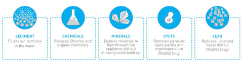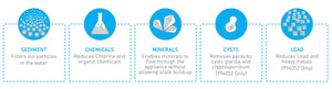 - Filtration Capability: Sediment, Chlorine, Taste and Odour, Parasitic Cysts & Lead.