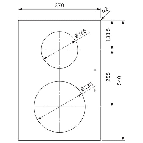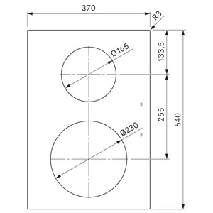 - Size of rear cooking zone: Ø 165 mm