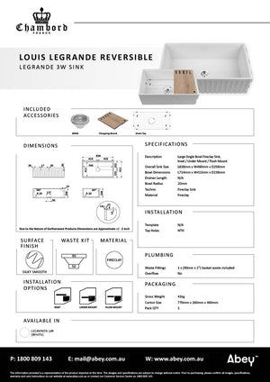 Our LEGRANDE range is Reversible. One side is scolloped, the other is plain. The sink includes a sliding chopping board and sink grid.