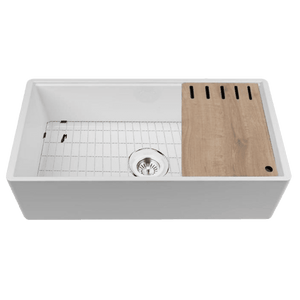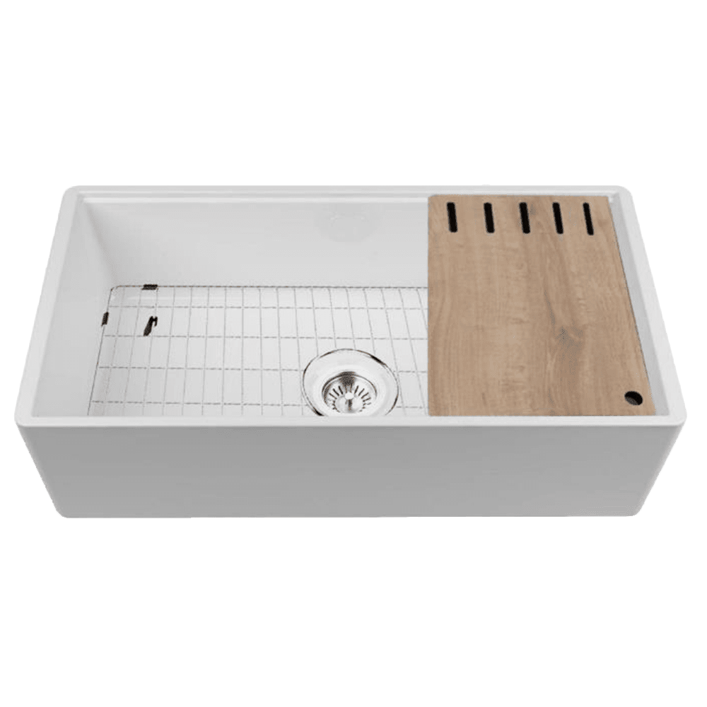 - Included Accessories: Sliding Chopping Board & Sink Grid