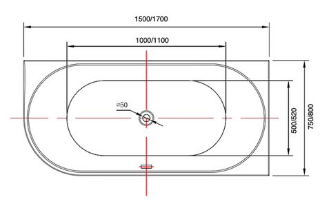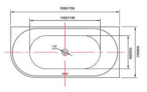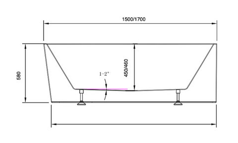 Dimensions: 1700 x 800 x 580mm- Right sided bath
