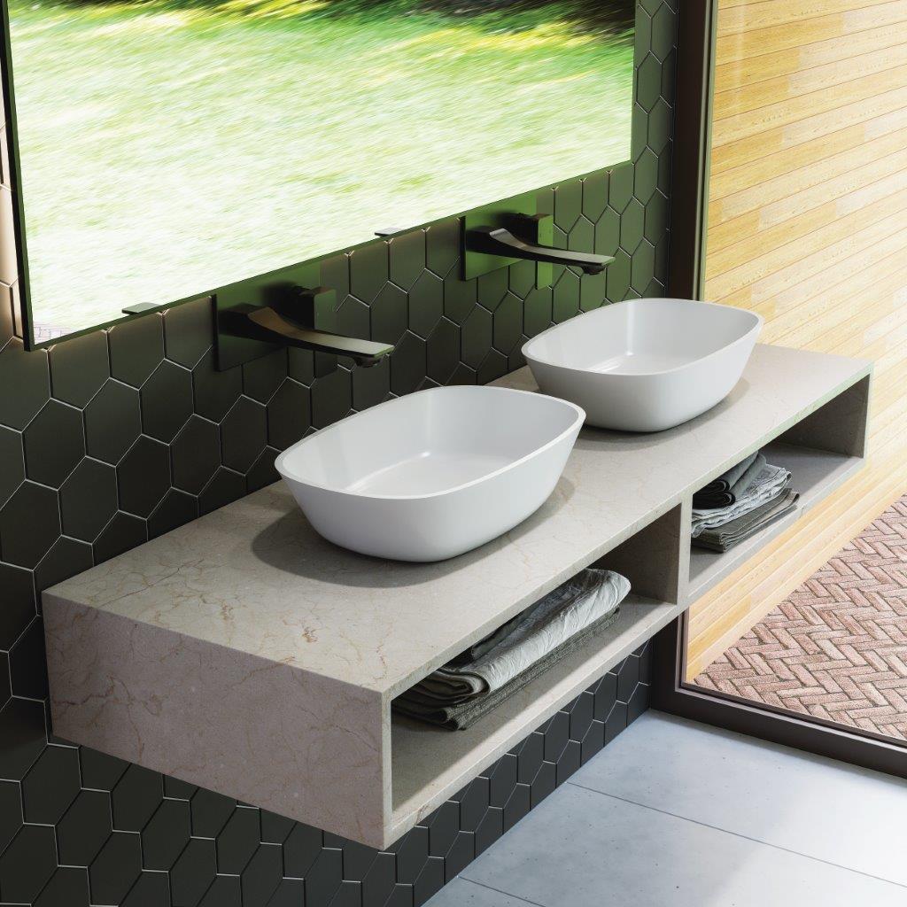 - Vivian basin’s snug and functional shape is a stylish option for a child-friendly bathroom.