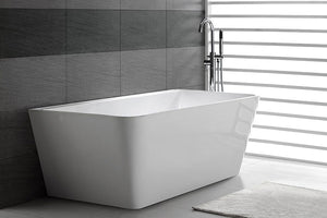 Aria back-to-wall rectangular freestanding bath features gentle reclining back rests and offers the practicalities of a tile bead, so it can be integrated into a tiled wall if space is at a premium.