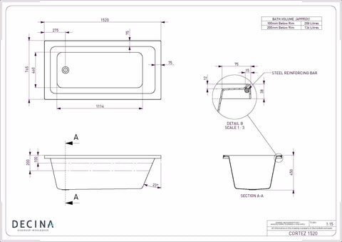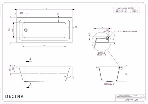 The Cortez inset bath, is perfect for creating a minimalist style bathroom. Designed as an inset bath the tiling bead around the baths perimeter, allows it to be fixed into a tiled wall. Designed with clean uncluttered lines it is perfect for maximizing bathroom space. The backrest reclines at one end for comfortable bathing.