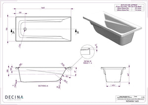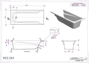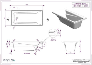 - NT1525W (Inset Bath) - 1525 x 735 x 447 (mm) - 101 litres