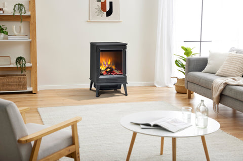 This compact electric stove gives you all of the cosy ambience of a wood stove with none of the mess. The matte black finish, working door and traditional stove style finish make it a perfect addition to any space. The Flame effect can be used independently of the heat source.- 2KW Heat Output