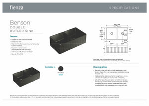 Fienza 68709 Benson Matte Black Double Bowl Fireclay Ceramic Butler Sink