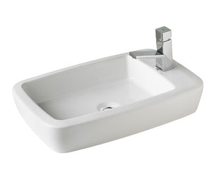 The Eos above counter basin with side ledge, part of the newest series from Gala of Spain, reflects the very latest design trend of clean and contemporary lines. The basin is 600mm wide with a 1 tap hole configuration and supplied with a chrome pop-up waste.
