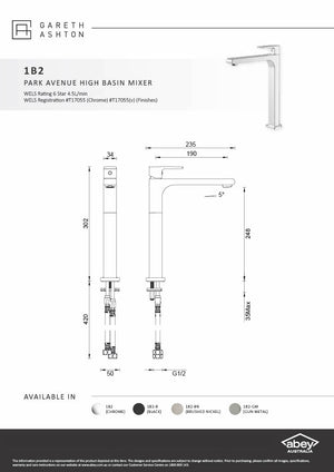 Gareth Ashton Floor Stock 1B2 Park Avenue Chrome High Basin Mixer