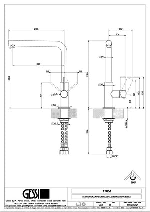 Italian designed and manufactured by GESSI this Kitchen Mixer includes an easy to use paddle handle in a modern finish.