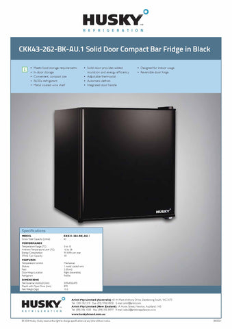 A convenient indoor bar fridge in a sleek black finish for storing and chilling your drinks with all the high quality features you’d expect from Husky. The solid door makes it a more efficient and reliable unit be eliminating light from entering the fridge cavity which will warm your drinks and add additional operating costs. The compact size makes it ideal for any setting with the capacity to hold up to 38 x 375mL cans of soft drink, beer or any other beverage you desire. This comes with a simple, unbranded exterior in your choice of either black or white making it suitable for any home, retail, business or hotel setting as well as one off custom designs to be applied post-sale.