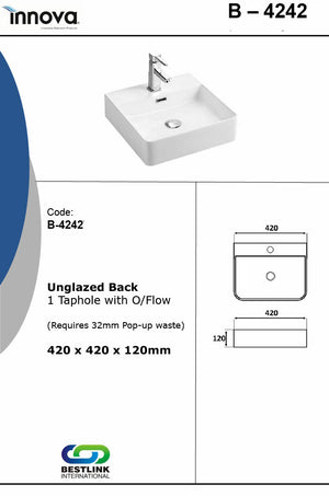 - Unglazed Back (Can be wall hung. Wall Fixing kit not included)