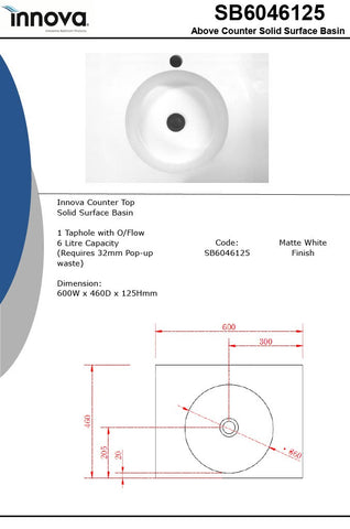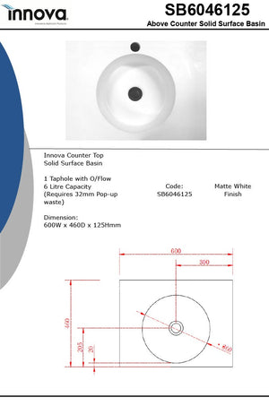- White Solid Surface / Matte Finish