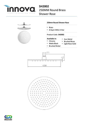 Innova SH2002 Nirvana 250mm Brass Shower Rose