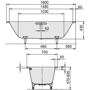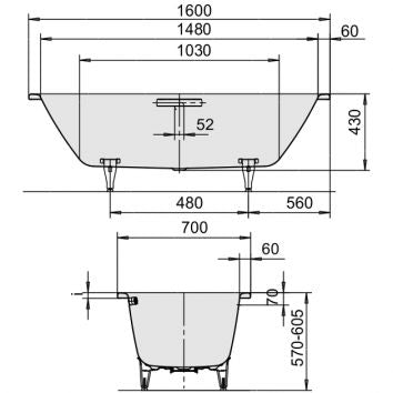 Classic Duo double ended bath with identical back rests and centrally positioned waste