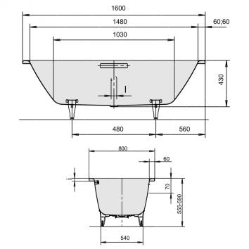 Classic Duo Oval double ended bath with identical back rests and centrally positioned waste