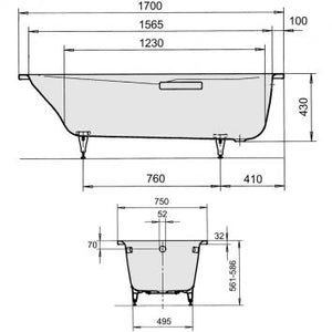 The Dyna Set bath is a dedicated shower bath with a wide standing area over the plug and a comfortable back rest for bathing.