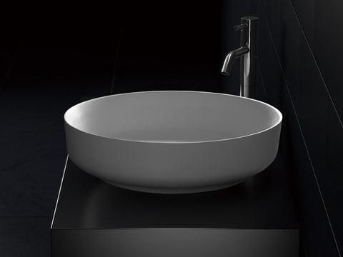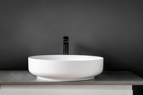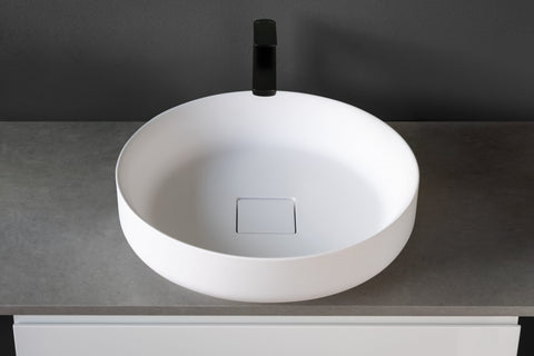 The BONN-450 Benchtop Round Stone Basin is a perfect blend of style and functionality for your bathroom. Crafted from premium stone, this basin boasts durability and modern aesthetics. Its round shape is complemented by a decorative square flap, ingeniously concealing the waste hole for a seamless and elegant look. With its compact size and sturdy construction, the BONN-450 adds a touch of sophistication to any bathroom setting. Elevate your space with this exquisite basin that combines form and function effortlessly.