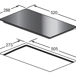 - 288mm (w) x 52mm (h) x 520mm (d)