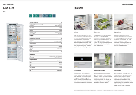 Model type: Integrated fridge-freezer with EasyFresh and NoFrost