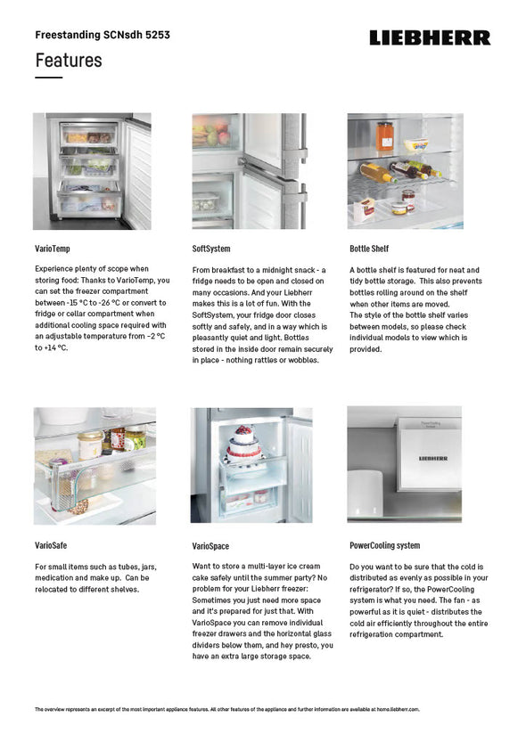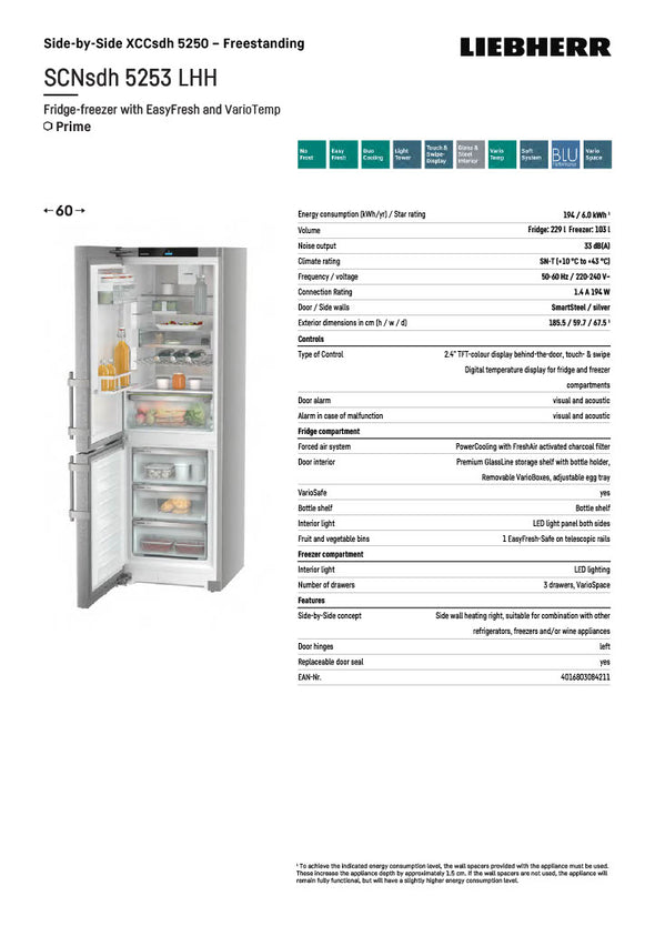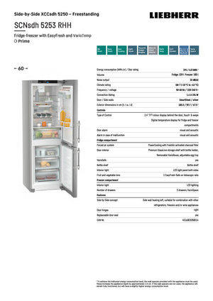 SCNsdh 5253 Prime NoFrost Technical Data: