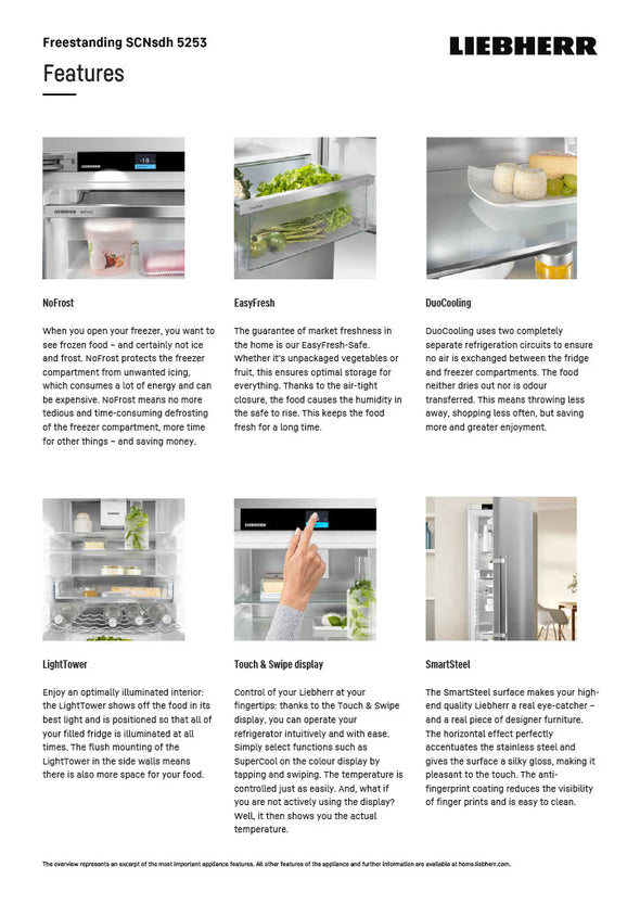 - Control of your Liebherr at your fingertips: thanks to the Touch & Swipe display, you can operate your refrigerator intuitively and with ease. Simply select functions such as SuperCool on the colour display by tapping and swiping. The temperature is controlled just as easily. And, what if you are not actively using the display? Well, it then shows you the actual temperature.