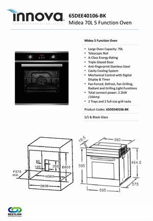 Midea 65DEE40106BK 60cm 5 Function Oven with Digital Display