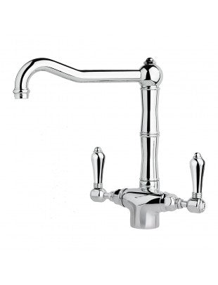 Single hole kitchen sink twinner mixer with traditional style swivel spout